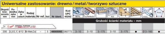 Milwaukee brzeszczot do piły szablastej 200/3,2/2,1mm 5szt. Drewno / metal / pcv 48005093