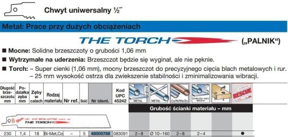 Milwaukee brzeszczot do piły szablastej 230/1,4mm torch bimetal 5szt. Do metalu 48005788