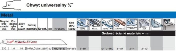 Milwaukee brzeszczot do piły szablastej 230/1,8mm 50szt. Metal 48016187