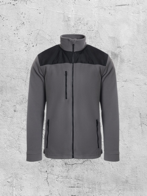 Model posiada trzy funkcjonalne kieszenie – dwie boczne zapinane na zamek oraz jedną na piersi, idealną na drobne akcesoria. Wzmocnienia na barkach i łokciach zwiększają trwałość bluzy, chroniąc materiał przed przetarciami. Na dole zastosowano ściągacz z możliwością regulacji, dzięki czemu polar dobrze dopasowuje się do sylwetki i zabezpiecza przed utratą ciepła.
